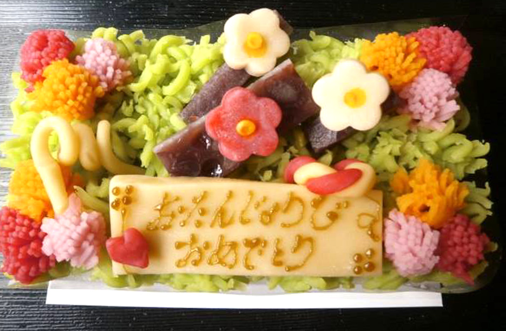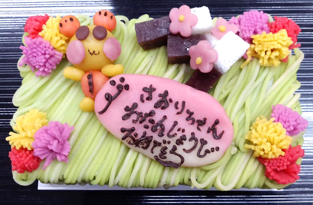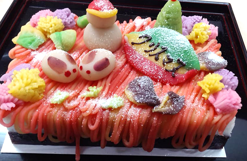 下の生地が小倉羊羹、上の生地がかるかんの、一味違ったケーキです。 ※一週間前要予約