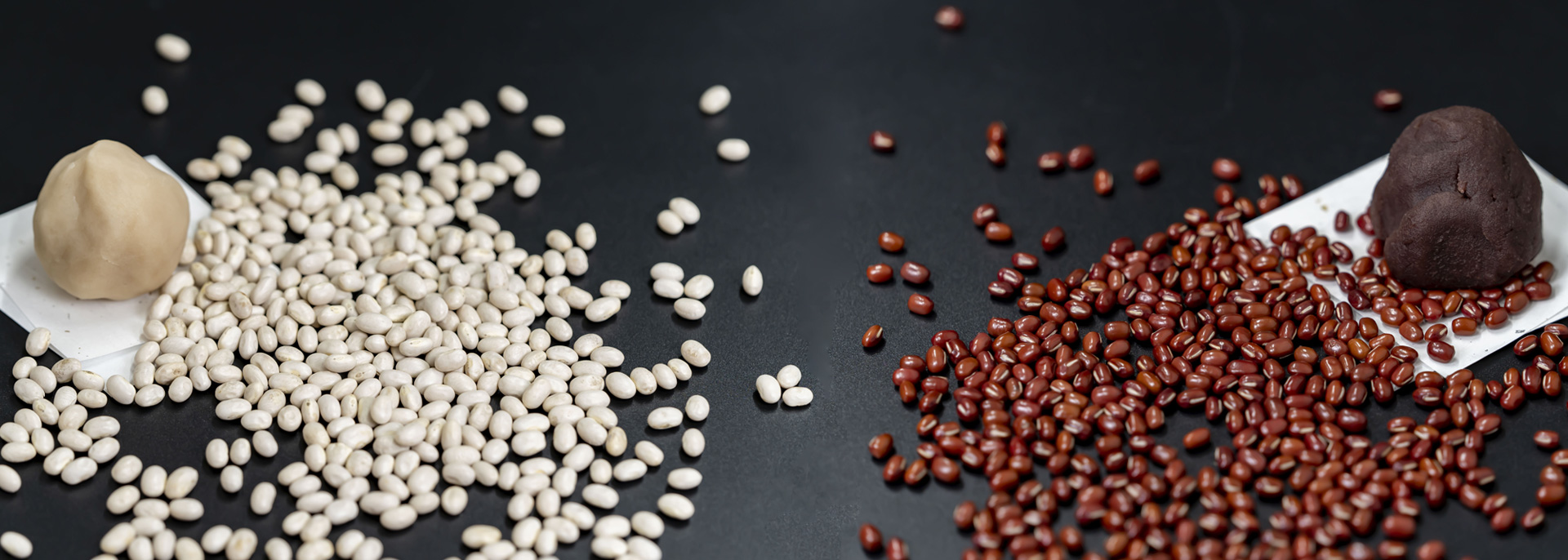 三日間かけ炊き上げた粒あんに、寒天を加えじっくり練り上げました。小豆の風味と金沢産最中種の香ばしさをお楽しみください。